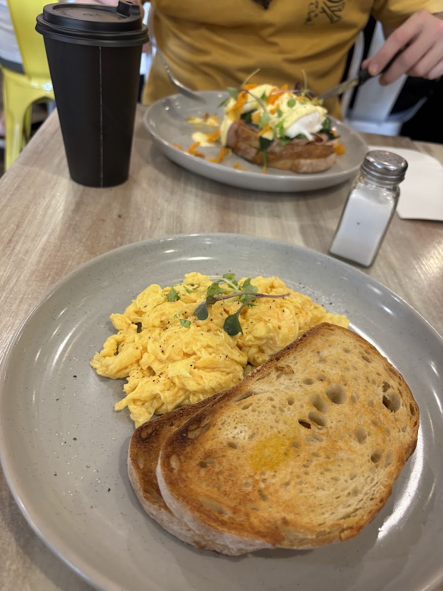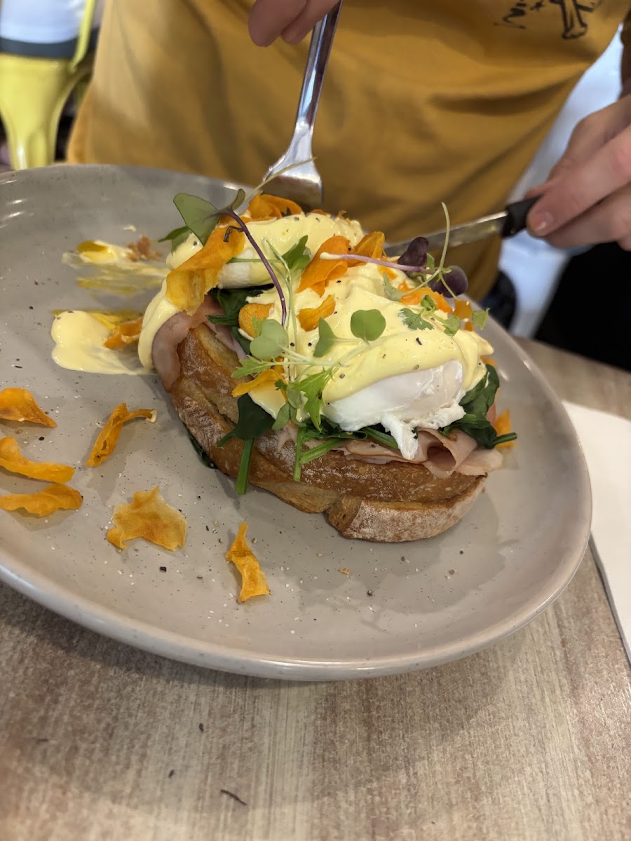 Food-wise, Bites on Bonwick leans into classic brunch favourites with a straightforward, well-executed menu. Dishes like the Eggs Benedict and scrambled eggs on toast are standouts, appreciated for their balance and simple, fresh flavours rather than anything too fussy. Particularly on sunny mornings, the smashed avocado and fluffy pancakes attract those after a comforting, familiar start. For those enjoying a quick lunch or lighter bites, the range of toasted sandwiches and salads offers solid options, while the almond croissant is a notably popular pastry choice.